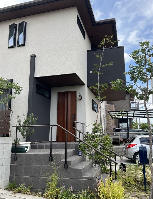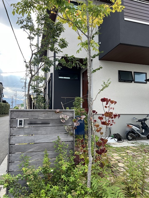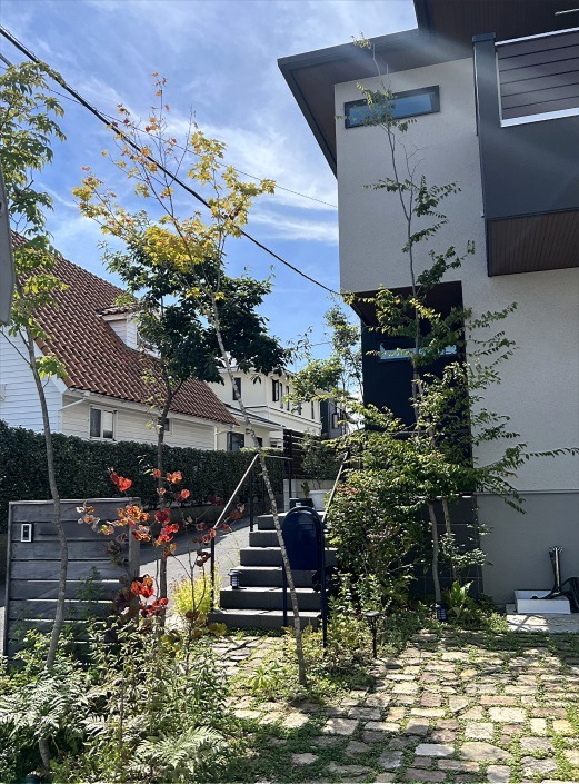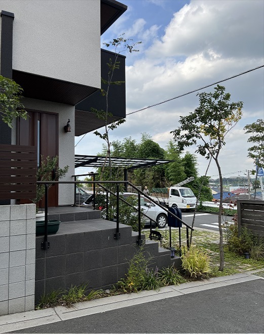 ホーム フォトギャラリー 新築・リフォーム すべて 神奈川県厚木市 新築外構 シンプルモダンな建物の古窯レンガ敷きでアプローチ I様邸 神奈川県厚木市 新築外構 シンプルモダンな建物の古窯レンガ敷きでアプローチ I様邸 新築 新築・リフォーム|すべて シンプルモダンな建物に、古窯レンガ敷き+草目地でナチュラルな雰囲気のアプローチ。下枝のない雑木を植えて、歩く動線を邪魔することなく緑を楽しめます。スペースがなくて、木を植えることをあきらめてしまうのは、まだ早いです!画像のみを表示全 6 枚中 1 枚目を表示Next ≫ 古窯レンガ敷きアプローチは、駐車場スペースにもつながっていて、車が止まってない時には、庭のように使える駐車場兼庭になっています。画像のみを表示全 6 枚中 2 枚目を表示≪ Prev|Next ≫ 工事完工から3年経ったI 様邸。雑木の、植えてから3年後から始まる成育コントロールのための剪定に伺った際の写真です。画像のみを表示全 6 枚中 3 枚目を表示≪ Prev|Next ≫ 手摺りのアーキレール ブラック色(LIXIL)柱はポーチの側面に設置出来る側面ベースプレート式に。階段の幅が広く確保出来ます。※訂正です!この玄関ポーチ・手すり部分は、ハウスメーカーさん施工の箇所です。画像のみを表示全 6 枚中 4 枚目を表示≪ Prev|Next ≫ 門柱は、ハードウッド材でオリジナル施工。インターホンと表札を取り付け。ポストはちらりと見えていますが、ボンボビ ネイビーブルー色。ハードウッド材は施工後、1年くらいでアクが抜けてシルバーグレー色になります。この状態で基本メンテナンスフリーです。画像のみを表示全 6 枚中 5 枚目を表示≪ Prev|Next ≫ 角地のため、隅切り形状になっている敷地。伺った時は、赤く色づいているマルバノキ、フジバカマが咲いて、つくり過ぎてない、いい感じのナチュラルな雰囲気になっていました。画像のみを表示全 6 枚中 6 枚目を表示≪ Prev 一覧へ戻る 新築・リフォーム 地域別 スタイル別 シーン別 ご来店お客様用資料 すべて 新築 リフォーム 厚木市 相模原市 伊勢原市 海老名市 座間市 綾瀬市 綾瀬市 大和市 愛川町・清川村 藤沢市 藤沢市 茅ヶ崎市 鎌倉市 横浜市 逗子市 葉山町 川崎市 二宮町 大磯町 小田原市 平塚市 秦野市 南足柄市 寒川町 開成町 東京都町田市 東京都八王子市 東京都多摩市 東京都日野市 東京都三鷹市 東京都府中市 東京都世田谷区・杉並区 東京都稲城市 和風 アウトドア 和モダン 駐車場兼庭 ウッドデッキ モリニワ 門周り・玄関周り 目隠し・間仕切り テラス アプローチ 店舗 植栽 施工