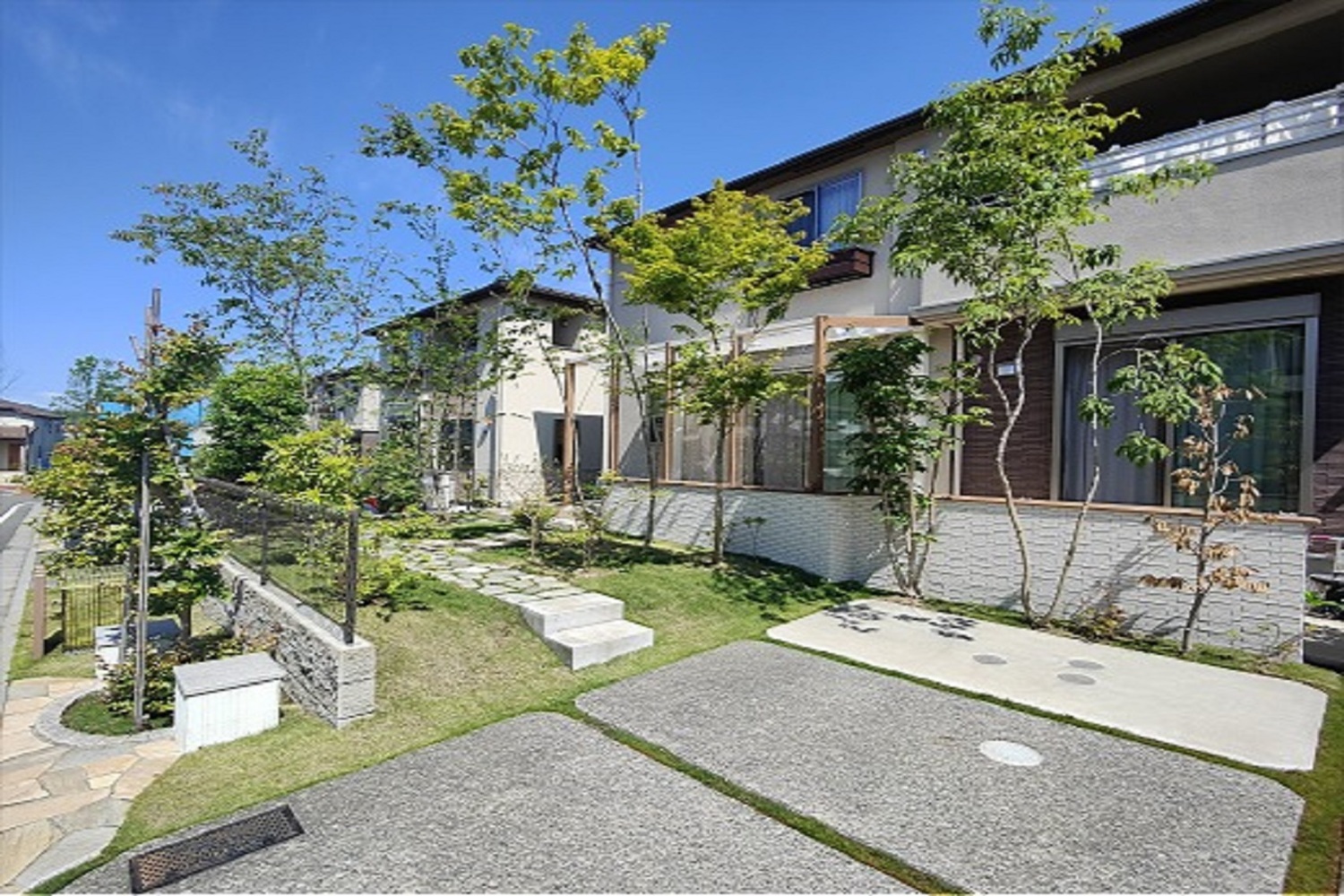 ホーム フォトギャラリー 新築・リフォーム すべて 八王子市 雑木に囲まれたテラスのある庭にガーデンリフォーム I様邸 八王子市 雑木に囲まれたテラスのある庭にガーデンリフォーム I様邸 リフォーム 新築・リフォーム|すべて 弊社の施工事例を気に入ってご依頼くださいました八王子市 I様ご家族。旧店舗のココマテラスのような雰囲気の庭がご希望とのことで、ガーデンリフォームをさせていただきました。画像のみを表示全 9 枚中 1 枚目を表示Next ≫ BEFORE芝生がきれいな庭に、コンクリート打ちのテラスと砂場があり、既存樹木が掃き出し窓側と道路側に植えられていました。画像のみを表示全 9 枚中 2 枚目を表示≪ Prev|Next ≫ BEFORE掃き出し窓が丸見えな感じがします。高低差のある庭に、コンクリ―トのステップと飛び石。飛び石は位置を替えて再利用。「使えるものは再度使ってリフォームが基本!」です。画像のみを表示全 9 枚中 3 枚目を表示≪ Prev|Next ≫ AFTERコンクリートテラス・砂場は撤去し、掃き出し窓前にタイルテラス、テラス屋根にココマ2(LIXIL )を施工。テラス前に、雑木の木々を植えて、夏は涼しく冬は暖かく過ごせるように微気候改善してます。樹木は、さりげない目隠しになり、室内から見える緑も心地良いかと思います。また、落葉樹を植えているため、冬は目隠し効果が薄くなりますが、代わりに日差しを取り込め、暖かく過ごせます。画像のみを表示全 9 枚中 4 枚目を表示≪ Prev|Next ≫ AFTERココマ2は、サイドスルー腰壁タイプ(湿式)間口1.5間×出幅6尺×H24 + オープンテラスタイプ 間口0.5間。腰壁はボーダータイル張りに。画像のみを表示全 9 枚中 5 枚目を表示≪ Prev|Next ≫ AFTER芝生部分に、自然石敷きでテラスに続く園路を。芝生は良く歩く部分は剥げてしまうので、園路にすると良いかと思います。画像のみを表示全 9 枚中 6 枚目を表示≪ Prev|Next ≫ BEFOREコンクリート洗い出し駐車場も外構リフォームしました。画像のみを表示全 9 枚中 7 枚目を表示≪ Prev|Next ≫ AFTERコンクリート駐車場の目地を撤去して、カタチもRをつけて、草目地に。画像のみを表示全 9 枚中 8 枚目を表示≪ Prev|Next ≫ AFTERコンクリート一部撤去して、箱抜きのようにしてます。草目地はI様セルフ施工です。駐車場の草目地と庭の緑がつながり、ナチュラル感増しましたね。庭が変わると、庭管理も楽しくなります。画像のみを表示全 9 枚中 9 枚目を表示≪ Prev 一覧へ戻る 新築・リフォーム 地域別 スタイル別 シーン別 ご来店お客様用資料 すべて 新築 リフォーム 厚木市 相模原市 伊勢原市 海老名市 座間市 綾瀬市 綾瀬市 大和市 愛川町・清川村 藤沢市 藤沢市 茅ヶ崎市 鎌倉市 横浜市 逗子市 葉山町 川崎市 二宮町 大磯町 小田原市 平塚市 秦野市 南足柄市 寒川町 開成町 東京都町田市 東京都八王子市 東京都多摩市 東京都日野市 東京都三鷹市 東京都府中市 東京都世田谷区・杉並区 東京都稲城市 和風 アウトドア 和モダン 駐車場兼庭 ウッドデッキ モリニワ 門周り・玄関周り 目隠し・間仕切り テラス アプローチ 店舗 植栽 施工